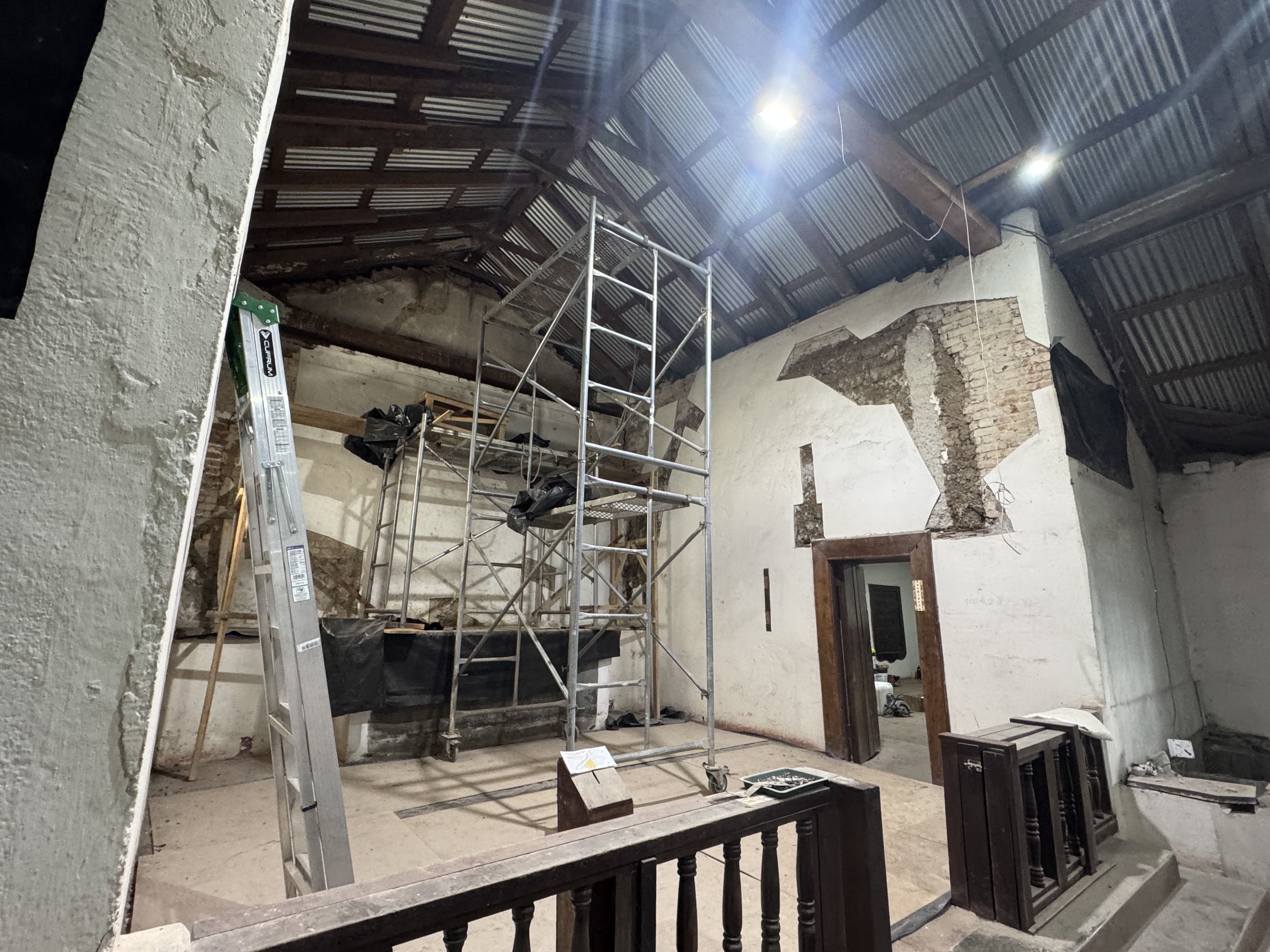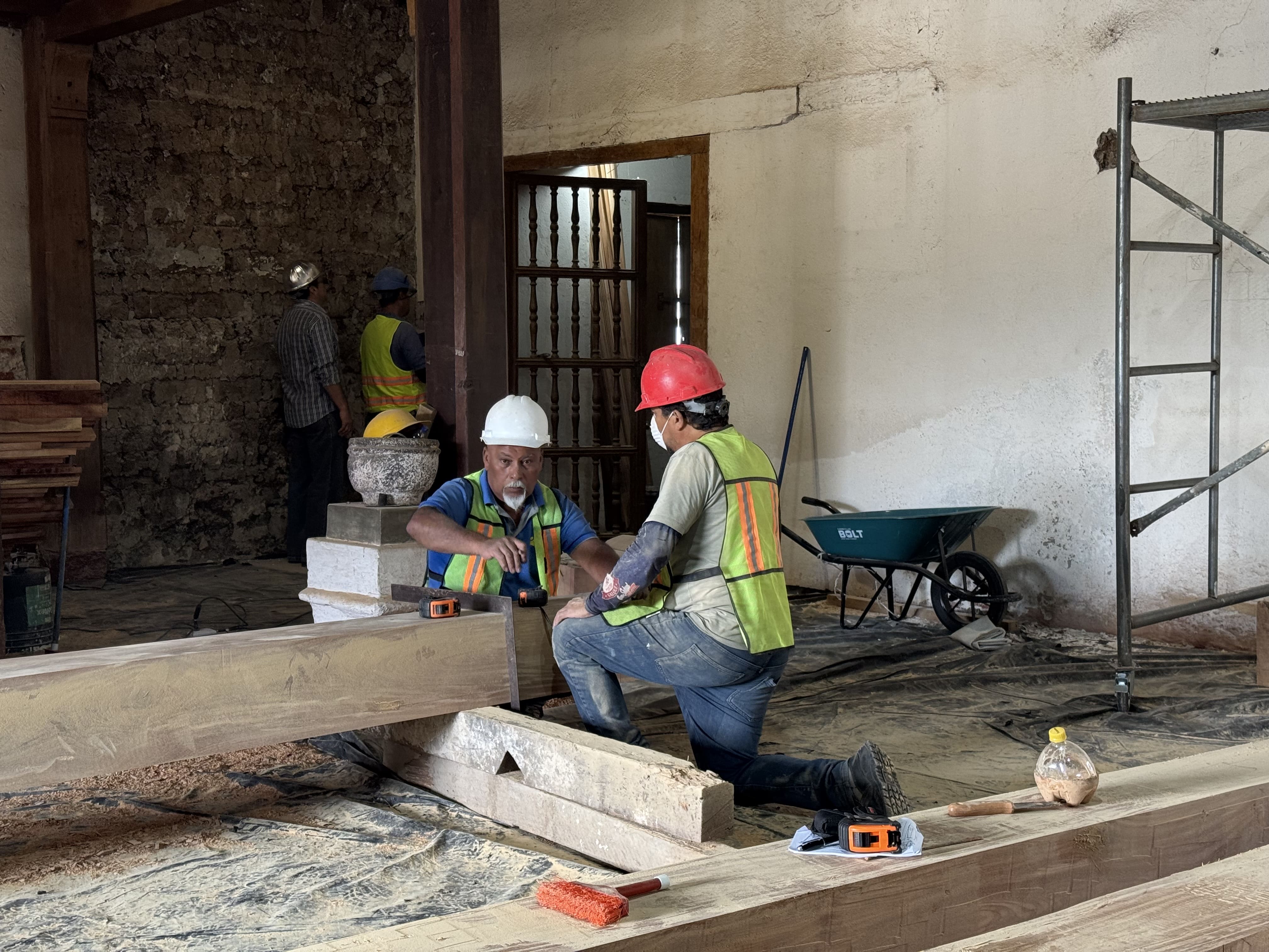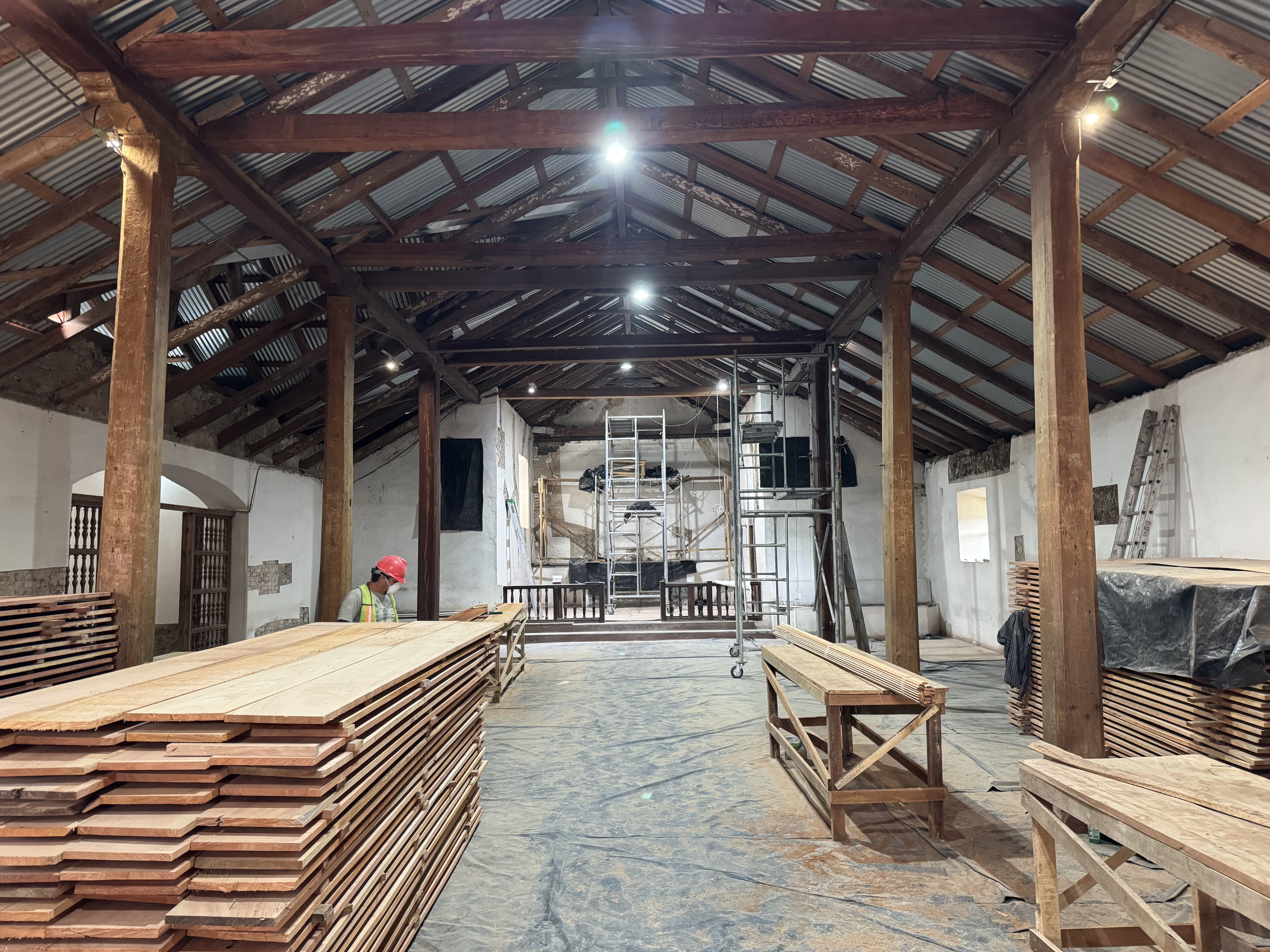 En el ámbito estructural, el proceso cuenta con la asesoría del ingeniero Adam Guzmán, garantizando el cumplimiento de criterios técnicos adecuados para edificaciones patrimoniales.